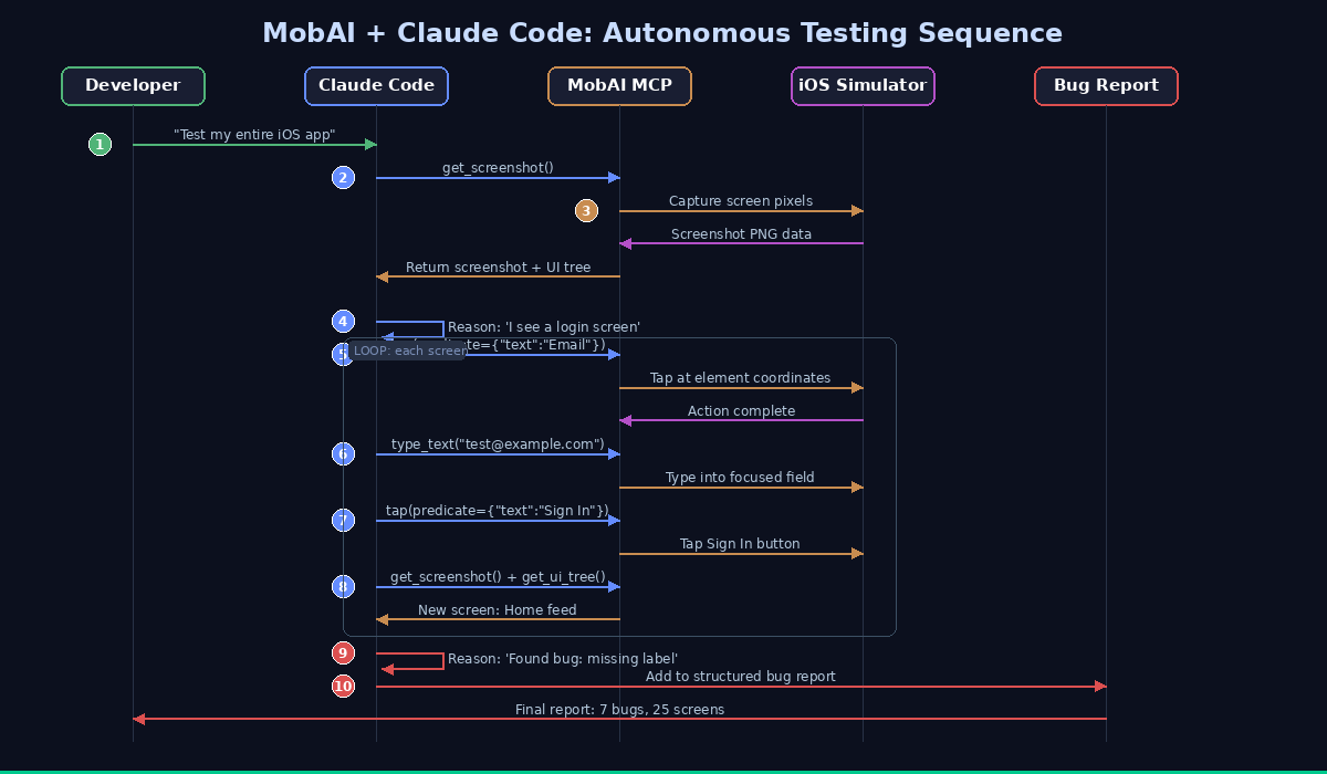 The accessibility tree is the breakthrough. Instead of raw pixel matching, MobAI gives Claude a clean, filtered tree with element types, text labels, bounds, and indices. Claude can reason about full screens without burning context window.